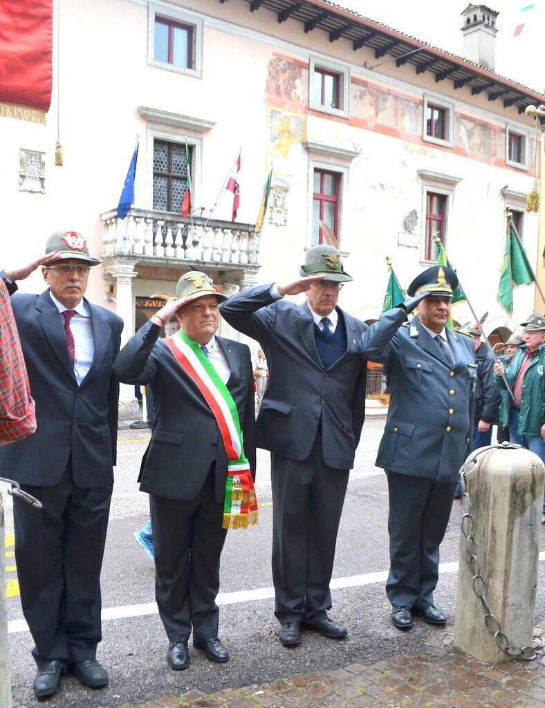 A rappresentare il Sindaco Francesco Valduga (impegnato alle cerimonie del pomeriggio per l'Adunata in svolgimento a Trento), è stato l'assessore Giuseppe Graziola, che ha portato il messaggio dell'Amministrazione Comunale.