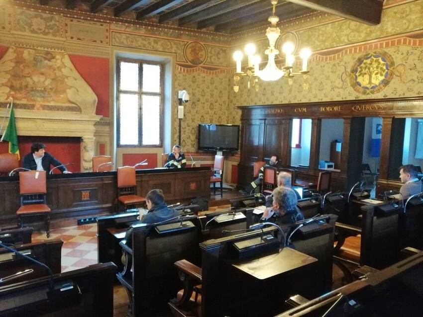 Il Comune di Rovereto è pronto da un punto di vista logistico per la distribuzione alla popolazione delle mascherine di protezione individuale. Si attende solo l'arrivo del quantitativo. La consegna dovrebbe iniziare domani. Questa mattina a Palazzo Pretorio si è svolta dalla Sala Consiliare una riunione operativa in videoconferenza presieduta dal Sindaco Francesco Valduga con il Comandante dei Vigili del Fuoco Marco Simonetti e i responsabili dei vari servizi che saranno coinvolti nella complessa operazione di consegna (dall'anagrafe all'informatica, dalla polizia locale al cantiere comunale).