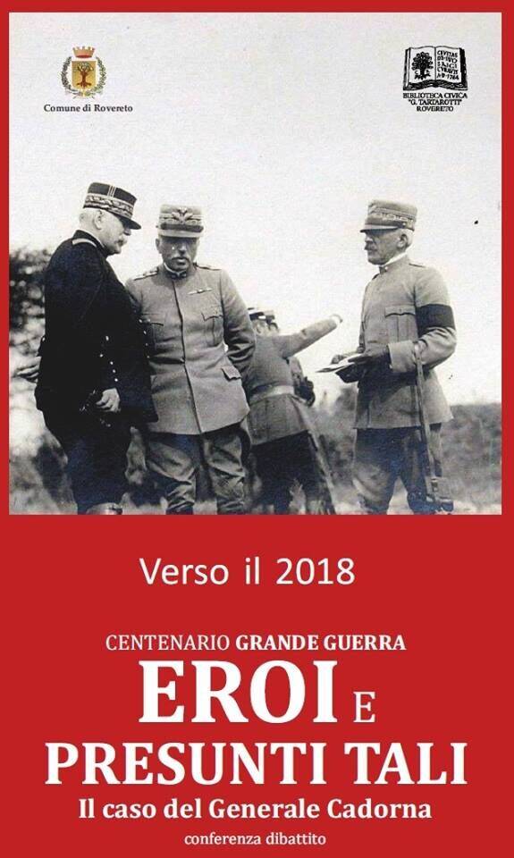 Oggi in Italia vie e piazze lo ricordano, ma il gen. Cadorna - il generale della Grande Guerra - non lo meriterebbe a detta degli storici più attenti come Sergio Tazzer giornalista e saggista e lo scrittore Ferdinando Camon, che per primo in Italia ha posto la questione di rinominare le piazze a lui intitolate. Per loro, bisognerebbe rivedere la toponomastica (come ha fatto la città di Udine) e ricordarlo come un cinico che mandò i soldati al fronte come carne da macello allestendo un esercito improvvisato con ufficiali formati durante corsi “accelerati”. Muove su queste considerazioni la conferenza che il Comune di Rovereto ha organizzato in occasione della ricorrenza del 4 novembre 2017, e in concomitanza del centenario di Caporetto chiamando proprio lo scrittore Ferdinando Camon e Sergio Tazzer autore di numerosi libri - tra questi “Banditi o Eroi?” (ed. Kellerman Vittorio Veneto). L'incontro si terrà il 9 novembre 2017 a Rovereto, nella sala Conferenze di Fondazione Caritro (ore 18).