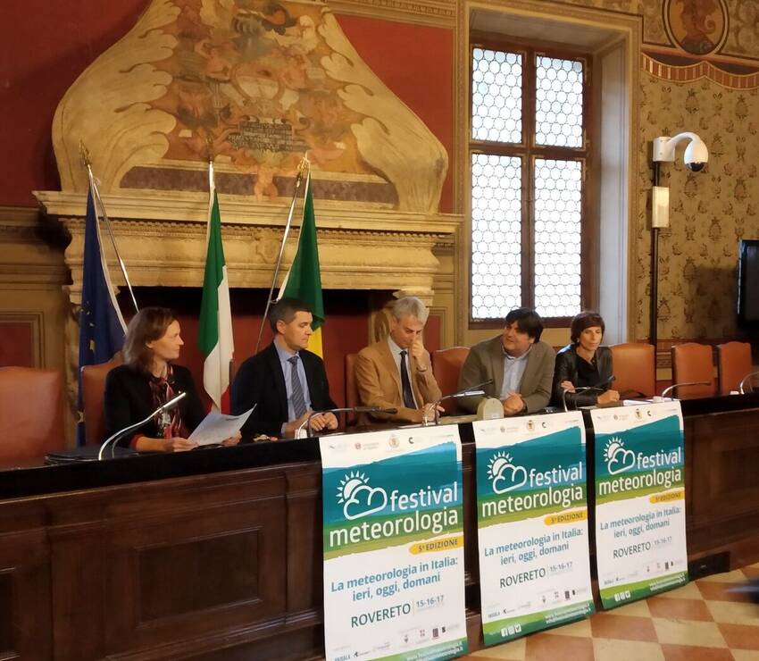 E' stata presentata oggi la 5^ edizione del Festival Meteorologia. Nella sala consiliare di Palazzo Pretorio a Rovereto sono intervenuti il Sindaco di Rovereto Francesco Valduga, ilRettore Università di Trento Paolo Collini, il curatore scientifico del Festival Dino Zardi , Monica Carotta Direttrice Area Attrazione e Location Management Trentino Sviluppo e Silvia Testi di Activart, la società che cura l'organizzazione del Festival2019.