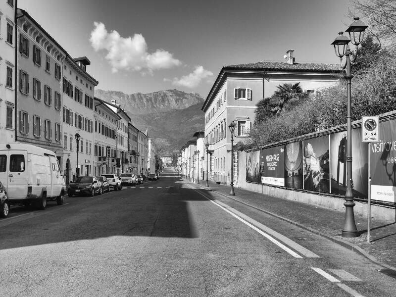 Dove l’arte è di casa, a Rovereto, anche la Biblioteca civica diventa spazio museale per raccontare, attraverso lo sguardo di due fotografi, Aldo Frisinghelli e Stefano Paglia, Presidente e Vicepresidente del Circolo Fotografico l'Immagine, le situazioni cittadine in un contesto particolare come quello della lockdown.