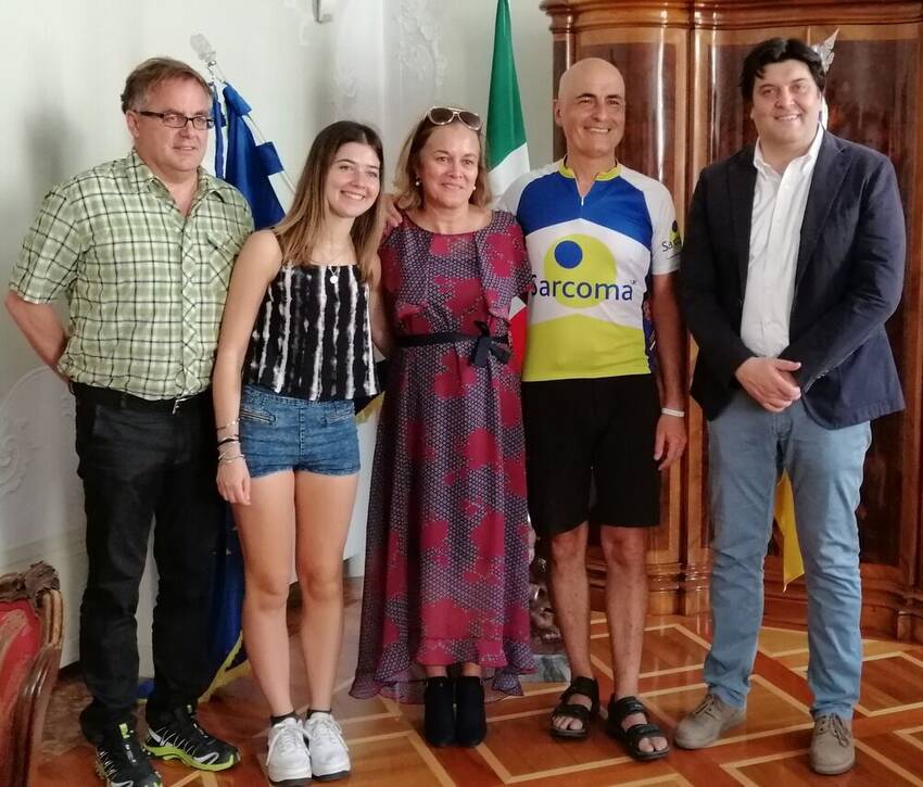 Al termine di un percorso di 1900 km percorsi in bici nell’arco di due sole settimane, Luigi Maraner cittadino italo-inglese, ha compiuto la sua impresa: arrivare a Rovereto, attraverso Inghilterra, Belgio, Francia, Lussemburgo, Germania e Svizzera per ricordare la sorella Anna Maraner scomparsa nel 2018 a causa di un sarcoma. Una vera maratona a pedali partita da East Grinstead (Gb) e conclusasi a Rovereto, individuata fin dall’inizio come tappa finale. Obiettivo dell’impresa sensibilizzare alla ricerca e promuovere una raccolta di fondi per gli scienziati che studiano la malattia, un crowdfunding che è tuttora in corso sul sito www.justgiving.com. Ad accoglierlo a Palazzo Pretorio c’erano il sindaco di Rovereto Francesco Valduga e l'assessore Mario Bortot insieme alla moglie Donna e alla nipote Lorenza (figlia di Anna) che si sono complimentati con lui per obiettivi e risultati del suo cammino (all'incontro nello studio del Sindaco erano presenti anche la zia Giovanna Maraner e la cugina Barbara Maraner).