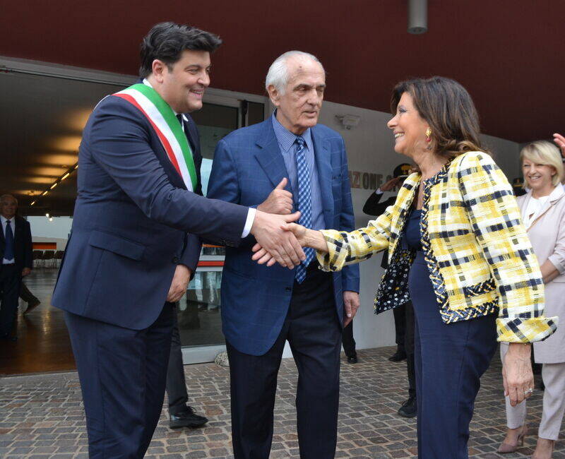 Accolta dal Reggente Alberto Robol e dal Sindaco Francesco Valduga (v.foto) presenti anche la senatrice Donatella Conzatti e e l’assessore provinciale Achille Spinelli, è stata accompagnata in visita della mostra storica nel Parco delle 97 Bandiere.
