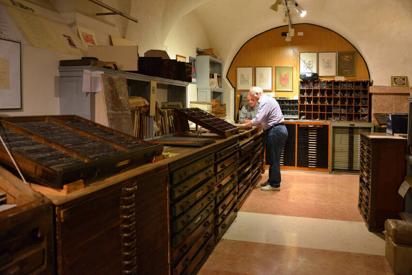 Questo comparto collaterale della Biblioteca Civica Tartarotti svolge importanti funzioni di diffusione della conoscenza della tipografia e della produzione del libro attraverso regolari attività di laboratorio, corsi periodici di formazione, nonché attività didattiche anche in collaborazione con musei e Accademie d’arte, per far capire come nasce un libro, dall'idea dell'autore, alla stampa ed alla conservazione. Nel laboratorio operano come volontari, tipografi e maestri cartai che hanno lavorato nel settore e che mettono a disposizione la propria esperienza e professionalità nel ciclo produttivo di realizzazione della carta, una realtà che presta la propria opera gratuitamente, come occasione di aggiornamento culturale e di impegno solidaristico, e pertanto non sono previsti compensi o remunerazioni per tali attività. Provvedono a molte attività di composizione e stampa del libro e della riproduzione a stampa nonché altre operazioni tipografiche ed editoriali su testi e documenti.