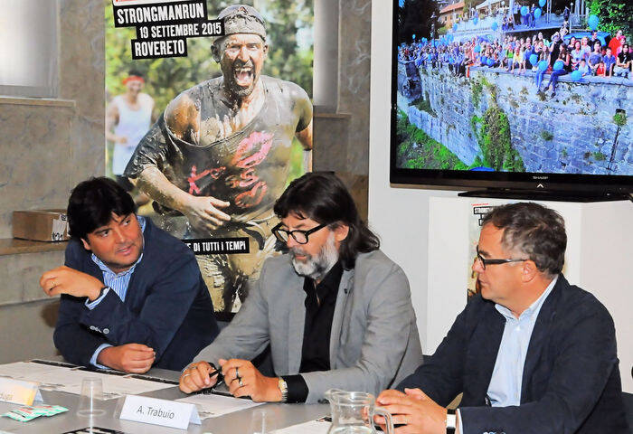 Il neo assessore allo sport Mario Bortot e gli organizzatori di RCs hanno presentato, in conferenza stampa il 3 settembre, la tappa finale della STRONGMANRUN @ROVERETO.