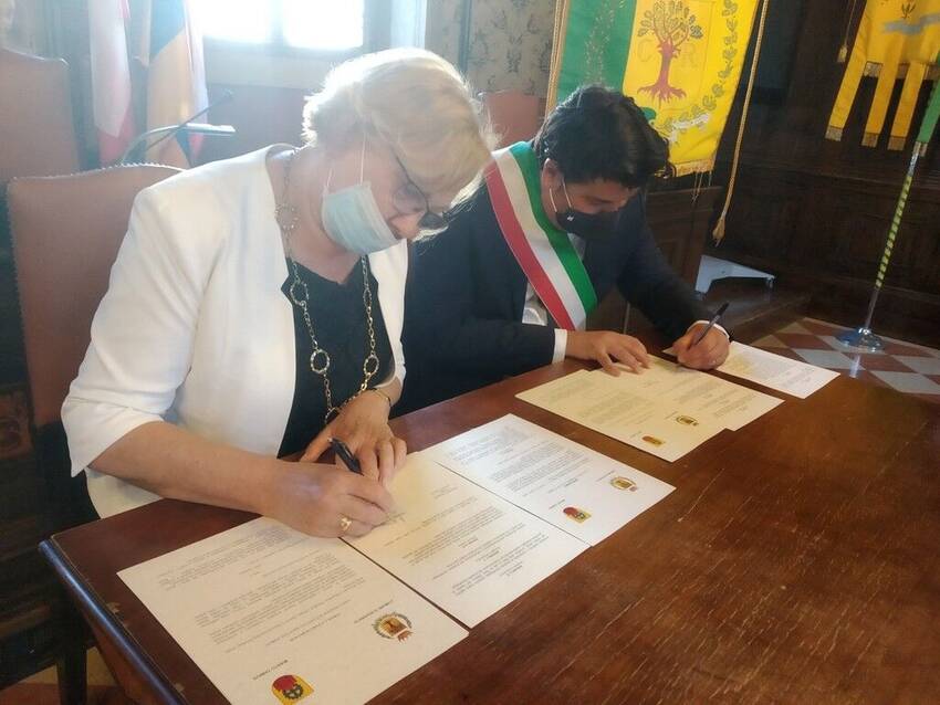 E’ seguita la firma del documento che sancisce ufficialmente il gemellaggio tra le due città.