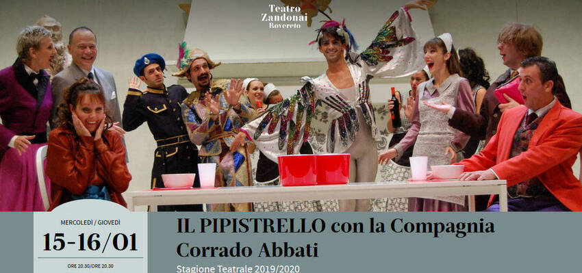Prosegue la Stagione teatrale 2019-2020 con due nuove date. Arriva ''IL PIPISTRELLO'' operetta di Johann Strauss su libretto di C. Haffner e R. Genée, con la Compagnia Corrado Abbati e il Balletto di Parma, con adattamento e regia di Corrado Abbati e coreografie Francesco Frola. Direzione musicale Marco Fiorini e allestimento scenico Inscena Art Design