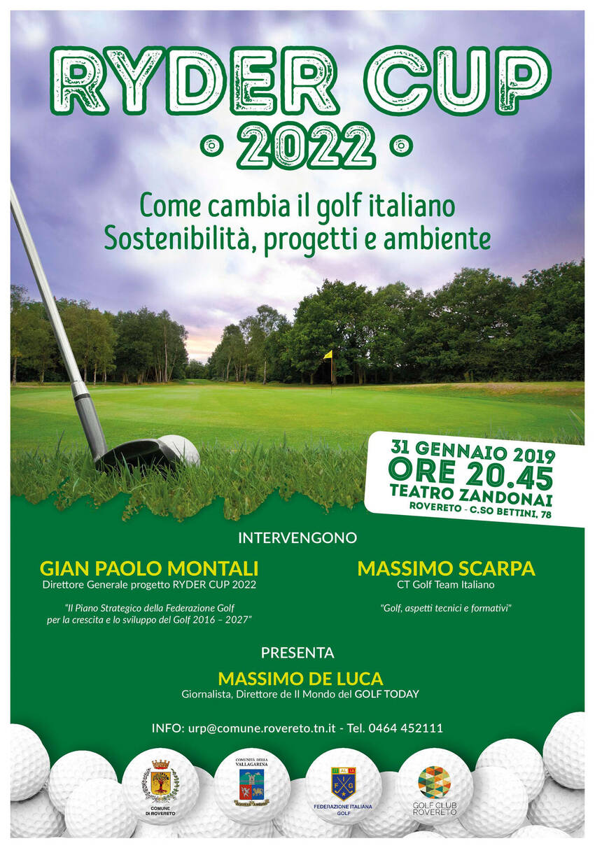 “La serata ci aiuterà a capire come è evoluto il golf in questi anni in Italia e ci consente di partire da un evento internazionale come la Ryder Cup per ricevere stimoli utili per le progettualità future – ha evidenziato il Sindaco Francesco Valduga, che ha sottolineato come sia importante sulla pratica sportiva del golf favorire un dibattito su dati concreti più che su opinioni personali. Alle domande dei giornalisti ha poi evidenziato come all'estero vi siano impianti di dimensioni ridotte e popolari che consentono un accesso easy e non a costi proibitivi ad una disciplina che erroneamente viene ritenuta in Italia per soli ricchi. “Anche un campo a 6 buche può essere utile allo scopo di diffondere questa pratica sportiva che concorre a rendere più attrattivo un territorio. Rovereto è città dello Sport per il suo ambiente e i suoi impianti, ed ospitare interventi come questo ci permette di inserirci in un dibattito sull'evoluzione dello sport e ragionare su quanto la nostra città possa fare al riguardo” ha aggiunto facendo riferimento al progetto di riqualificazione paesaggistica dell'Area dei Lavini. “E un'area che comprende Zugna, Orme dei Dinosauri, Costa Violina, l'ex-discarica e la Ruina Dantesca che insieme concorrono a immaginare di calare sul nostro sistema economico un attrattore turistico che può generare indotto economico e produrre nuove opportunità. Ecco dunque che un evento informativo diventa occasione per un ragionamento più ampio e strategico sullo sviluppo della città inserito in un contesto più ampio che è quello del rapporto di Rovereto con la Comunità della Vallagarina”.