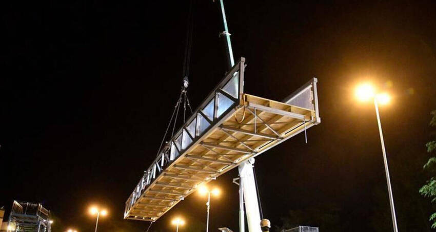 Da ieri sera la passerella pedonale di Piazzale Orsi è stata posizionata: per entrare in funzione ed essere percorribile dal pedone ci vorrà però ancora qualche giorno. Devono infatti essere ultimati gli allestimenti che la doteranno anche di uno scivolo per il passaggio di biciclette e trolley. Saranno due binari a consentirlo, e verrano posti a lato dei gradini. Una volta finiti gli scivoli e compiuti i collaudi sarà quindi aperta.